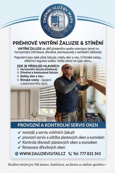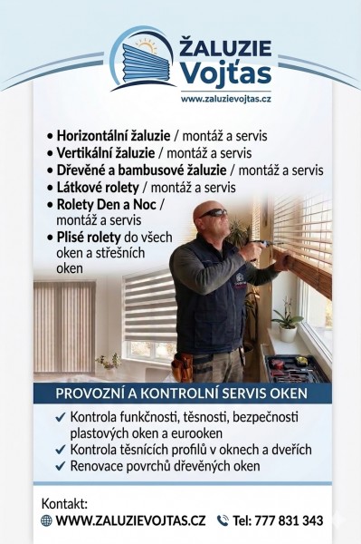 ŽALUZIE Vojťas - OKENNÍ SLUŽBY MaVo - od roku 1997 jsem odborným poskytovatelem služeb v oblasti montáže a servisu žaluzií a další interiérové stínící techniky. MONTÁŽ A SERVIS SÍTÍ PROTI HMYZU